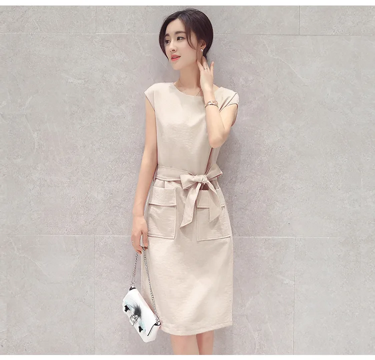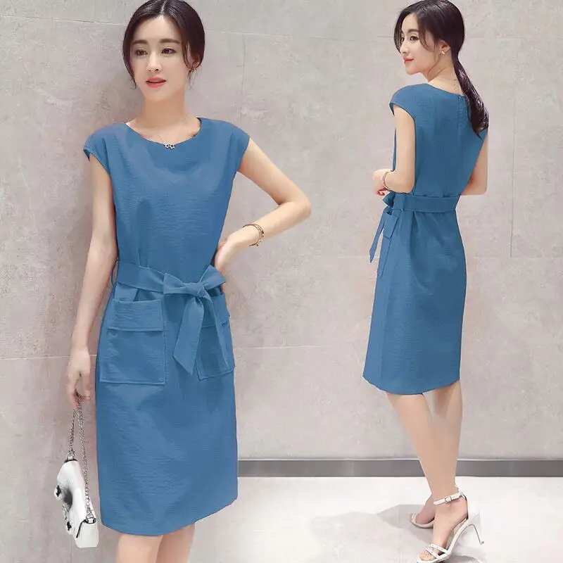 BEST QUALITY Summer Wear New Style Dress Women's Korean-style Slim Fit Slimming Mid-length Cotton Linen Breathab