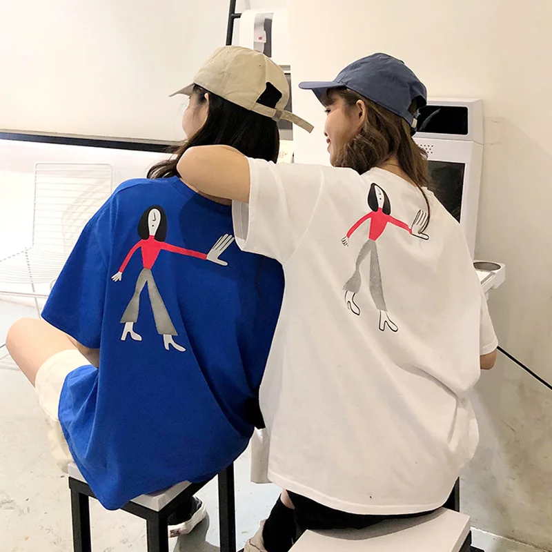 HOT Sale Photo Shoot 2019 Summer New Style Short Sleeve T-shirt Students Loose-Fit Back Cartoon Figure Print