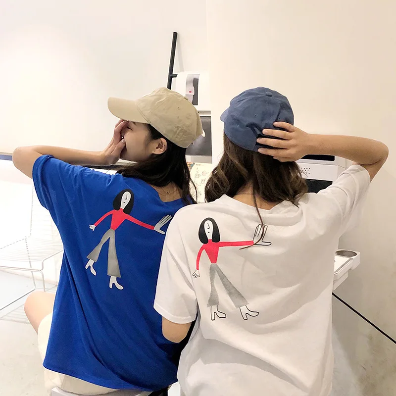 Photo Shoot 2019 Summer New Style Short Sleeve T-shirt Students Loose-Fit Back Cartoon Figure Print