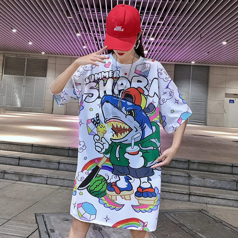 Hot Sale Photo Shoot 2019 Summer Large GIRL'S Large Size Loose-Fit Mid-length T-shirt Women's Mesh Viscose Q