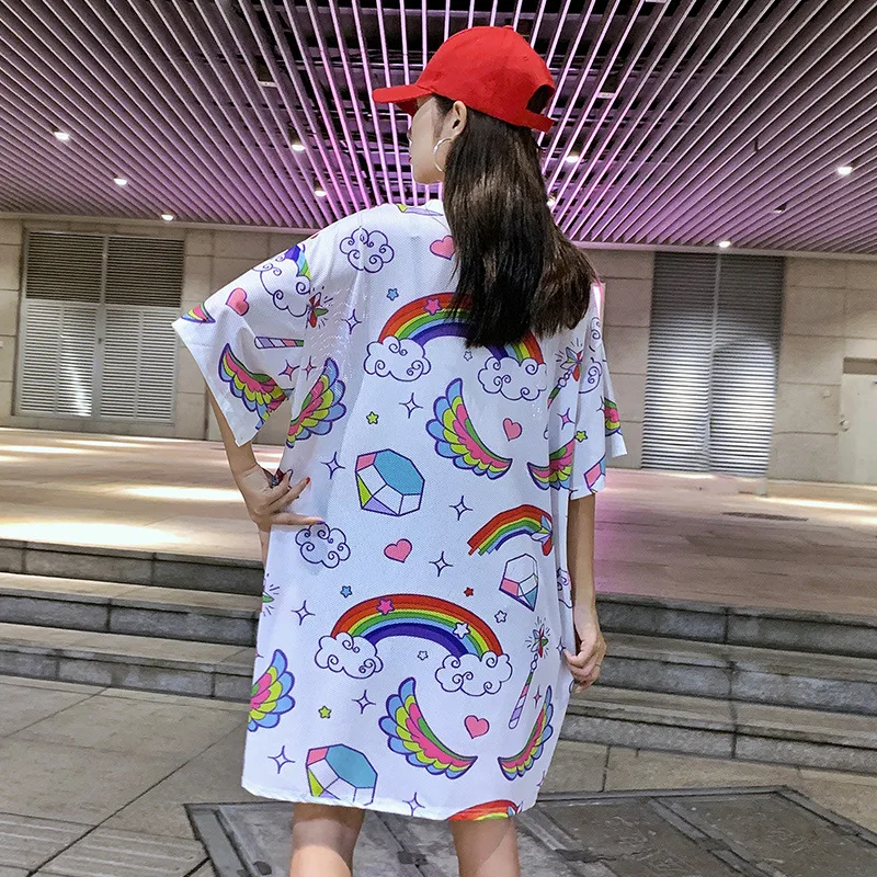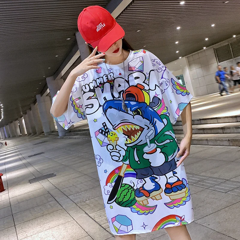 Photo Shoot 2019 Summer Large GIRL'S Large Size Loose-Fit Mid-length T-shirt Women's Mesh Viscose Q
